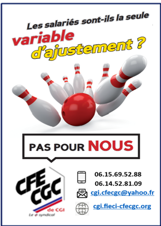 - La CFE-CGC de CGI n’est pas contre le principe d’une RCC, mais pas dupe non plus. Nous voulons des garanties sérieuses pour éviter que ceux qui restent ne paient pas la note ;